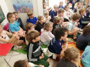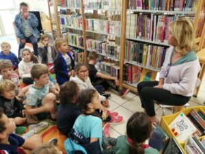 Le vendredi 10 octobre, les enfants de CE1 et CE2 sont allés rencontrer la bibliothécaire Cathy qui leur a lu de belles histoires.