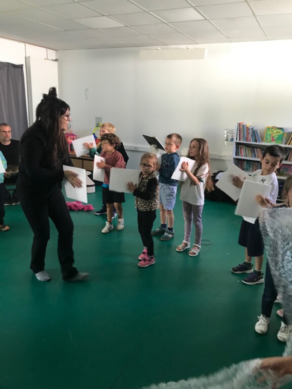 C’était un très bon moment où chacun a pu explorer des matières pour bruiter une partie de l’histoire. Et comme nous avons eu le CD en cadeau…nous pourrons continuer cette exploration!